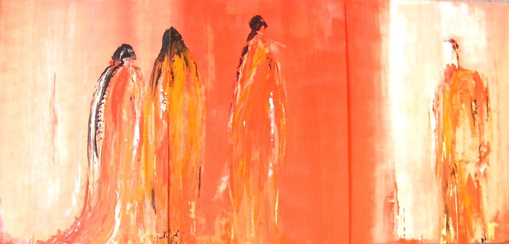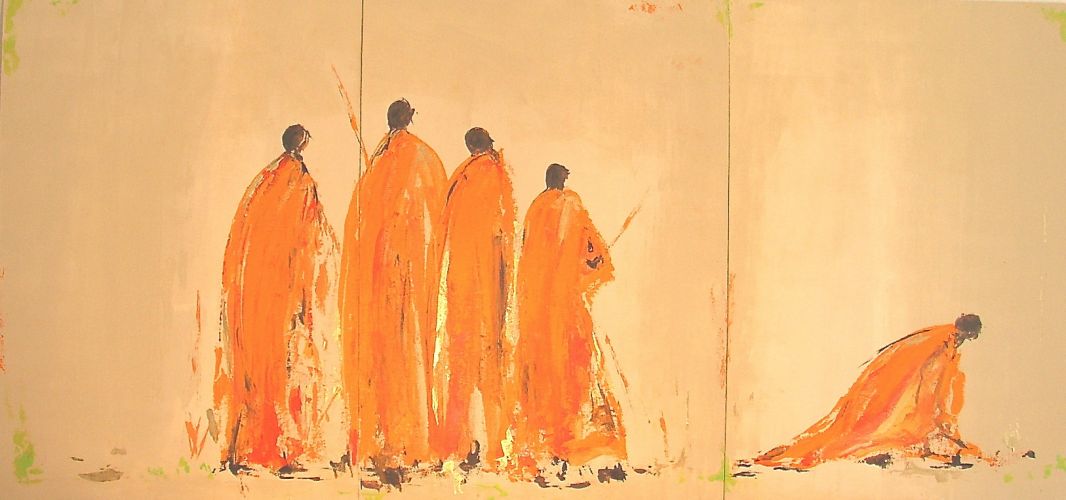 Krieger, Mischtechnik auf Pappelholzplatte, Triptychon, 90 x 50 cm *** VERKAUFT ***
