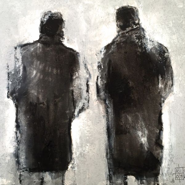 Gespräch, Mischtechnik auf Pappelholzplatte, 40 x 50 cm *** VERKAUFT ***