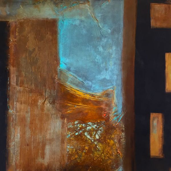 Rusty Wood, Mischtechnik auf Fotokarton, 17 x 5 cm
